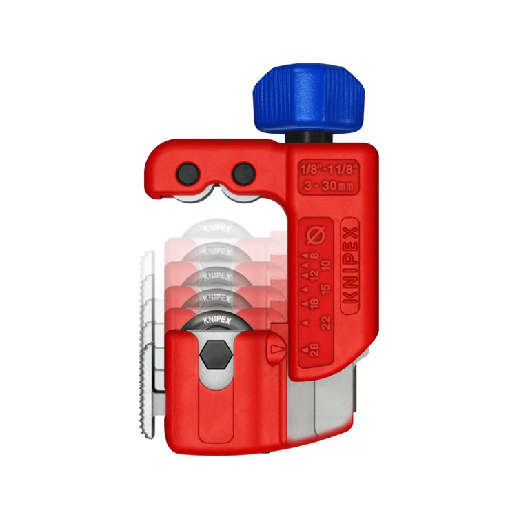 切割輪可輕松更換,手柄旋鈕中配有備用輪